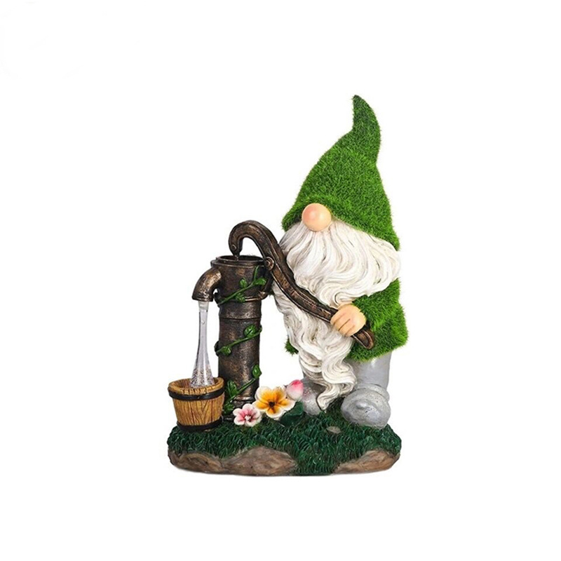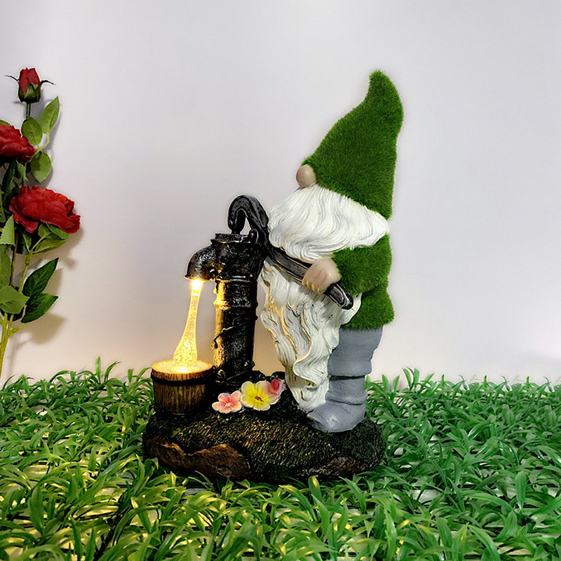 Waterproof Resin Crafts Solar Ornaments Solar Garden Lights Water Pumping Feature for Yard Decoration Road Featuring Dwarf Gnome