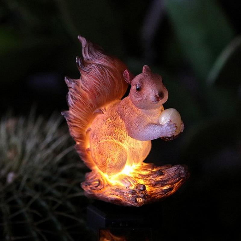 2025 Waterproof Solar Lamp for Garden Office Road Decor Resin Animal Squirrel Magpie Cactus Owl Bird Fence Outdoor Decoration