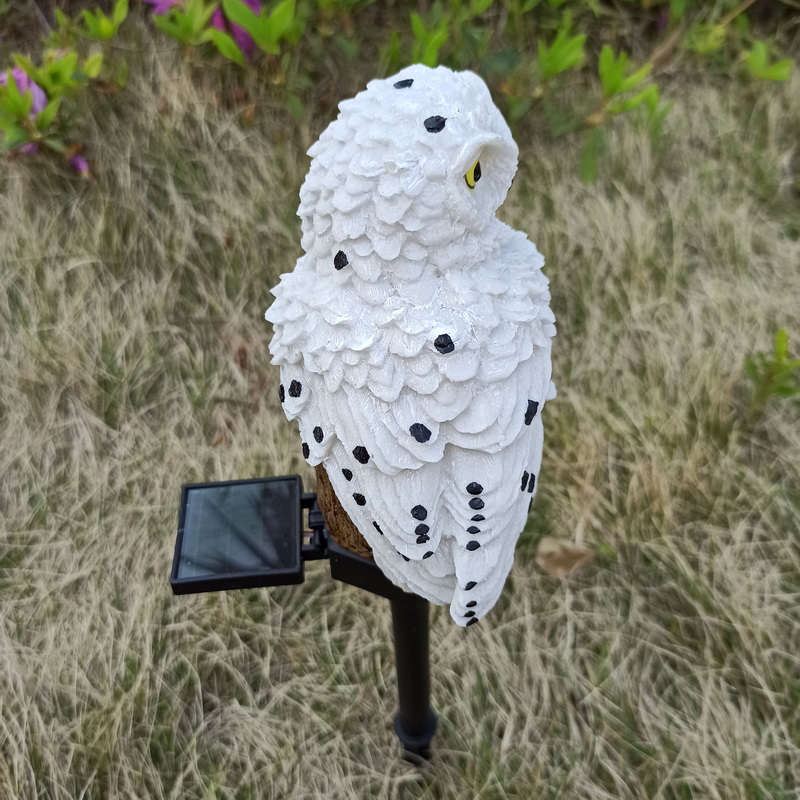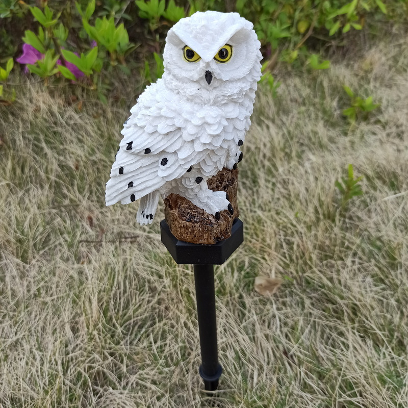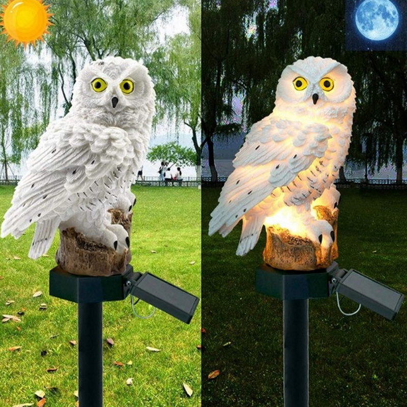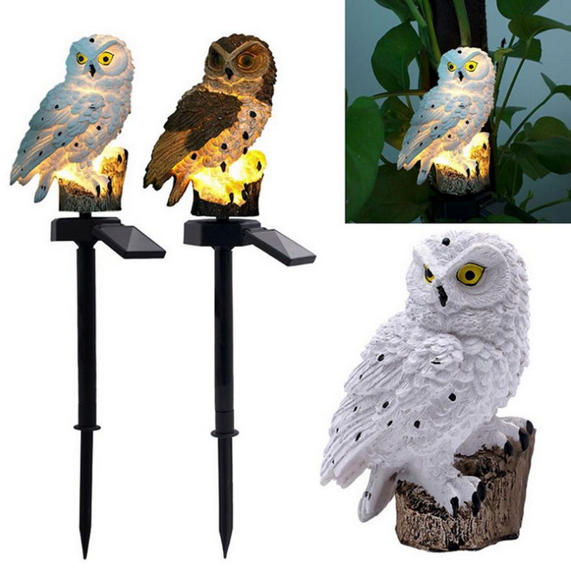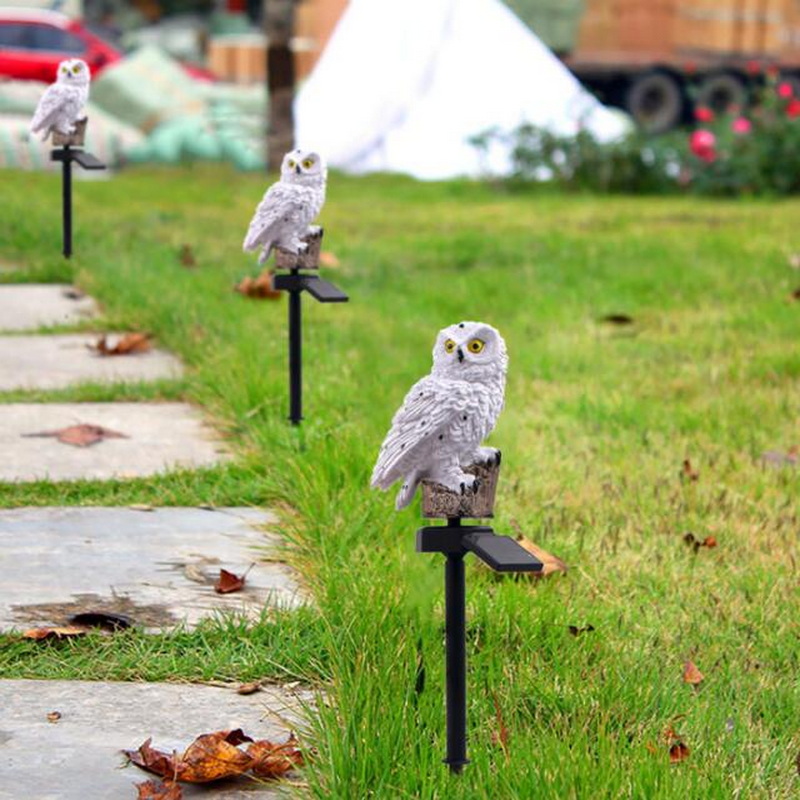 Outside Waterproof Outdoor Solar Garden Light Led Brown White Animals Owl Shape Statue Pathway Lawn Stick Solar Owl Lights