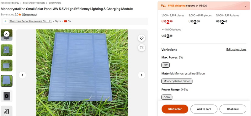 Monocrystalline Small Solar Panel 3W 5.5V High Efficiency Lighting & Charging Module